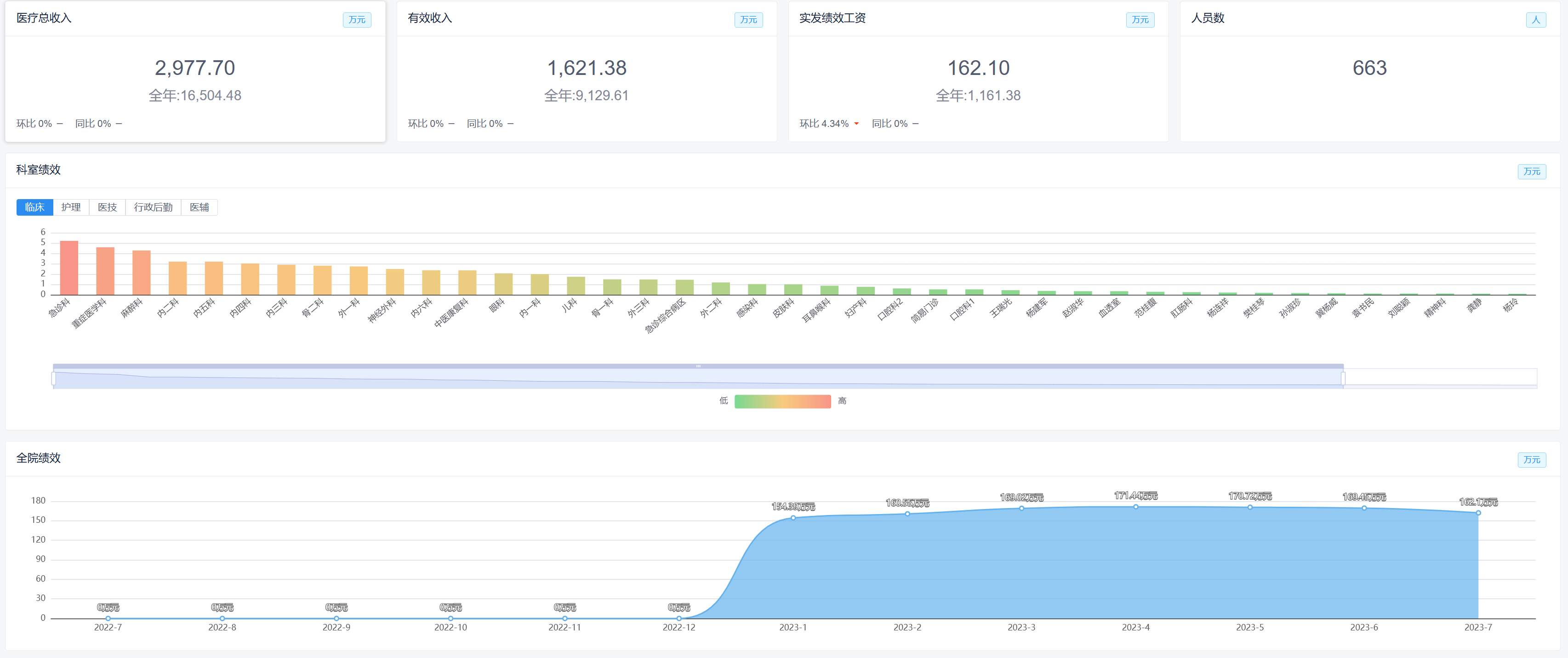 可以对全院绩效、科室绩效、人均绩效进行分析。