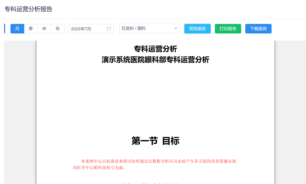 可以出具全院、科室的运营分析报告。