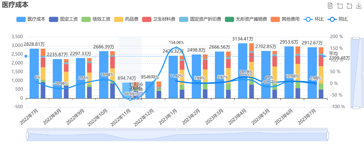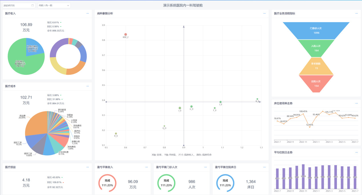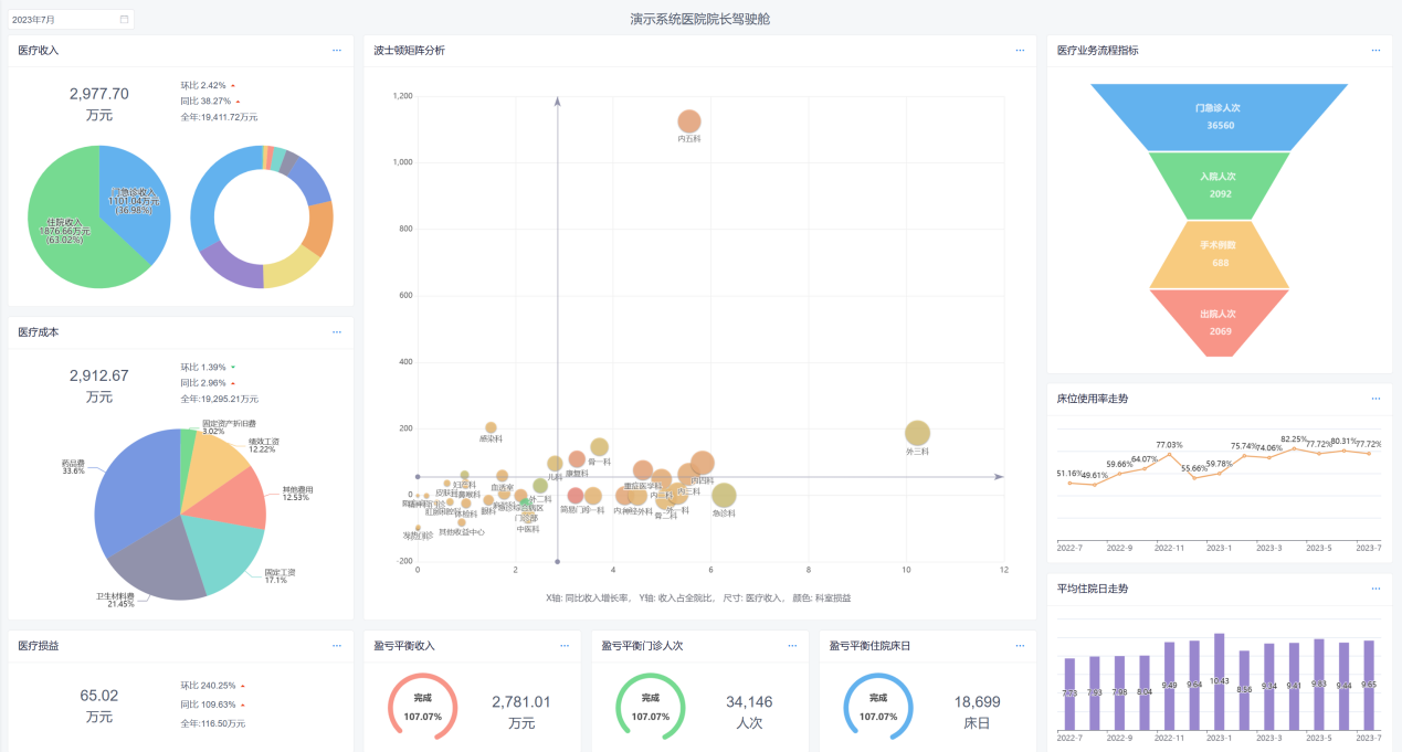 帮助院领导及管理层快速了解当月运营情况,包括业务指标、经济指标、决策指标。
