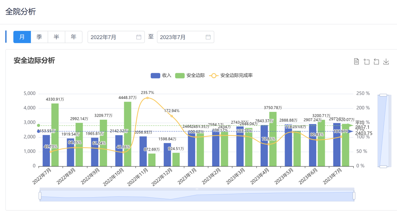 根据科室运营管理能力分类设定安全边际率,配合运营成本考核方案,实现全院盈亏平衡。